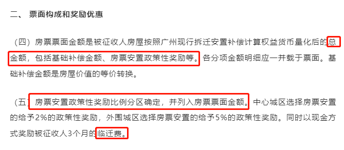 房票票面金额主要由基础补偿金额+房票安置政策奖励确定。
