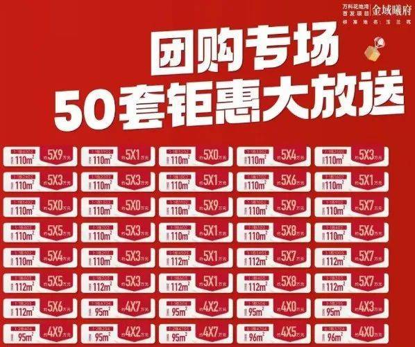 万汇天地·金域曦府,一口气放出50套特价房,主要为建面约95-110平户型,楼层选择非常多,价格40X万起。