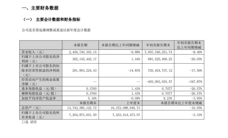 10月27日晚,索菲亚家居股份有限公司(以下简称“索菲亚”)公布2025年三季度业绩报告,1-9月营业收入70.08亿元,同比减少8.46%;归母净利润6.82亿元,同比下降26.05%。其中,第三季度公司实现营业收入24.57亿元,同比下降9.88%;归母净利润为3.62亿元,同比增长1.44%,净利率为14.74%,较去年同期的13.1%稳健增长。