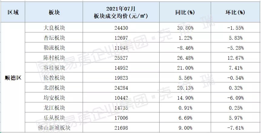 顺德区CRIC数据显示,截至7月份顺德区11个板块中,一手住宅(口径:普通住宅+别墅)成交均价在2字头的有4个板块,分别是大良、陈村、北滘以及佛山新城板块;值得一提的是,除勒流板块外,其余板块较去年同期均价都有不同幅度的上涨。