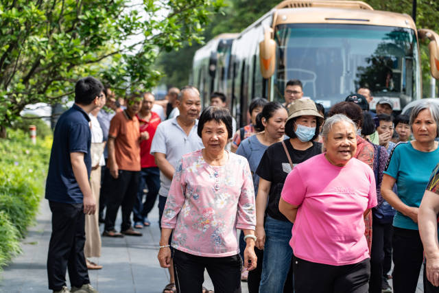 趁着“五一黄金周”,不少村民带着“全家老小”过来看房。为方便附近安置群众看房,开建集团还专门安排车辆接送。