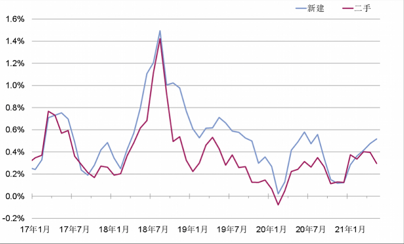 二手住宅价格连续两个月增长减速,各线城市增幅回落。一、二线城市的增长表现继续先进于低线城市。其中,增速较快的城市有北京(1.1%)、徐州(1.1%)、西安(1.0%)、重庆(1.0%)、杭州(0.9%)、广州(0.9%)。