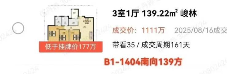 2023年高峰时期项目最高成交均价为12.93万元/㎡,套均价超2500万元,跌幅为40%。