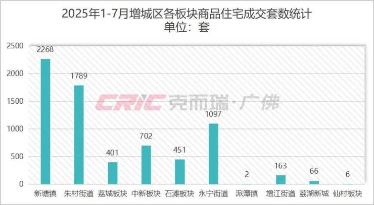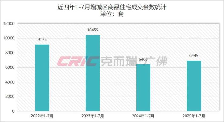 新房市场方面,克而瑞数据监测显示,2025年1-7月增城商品住宅成交6945套,其中7月成交875套,无论是总量还是7月成交,增城均位列十一区之首。