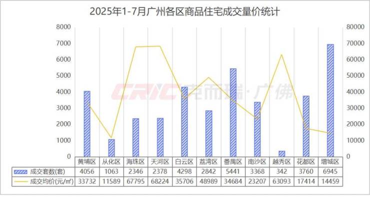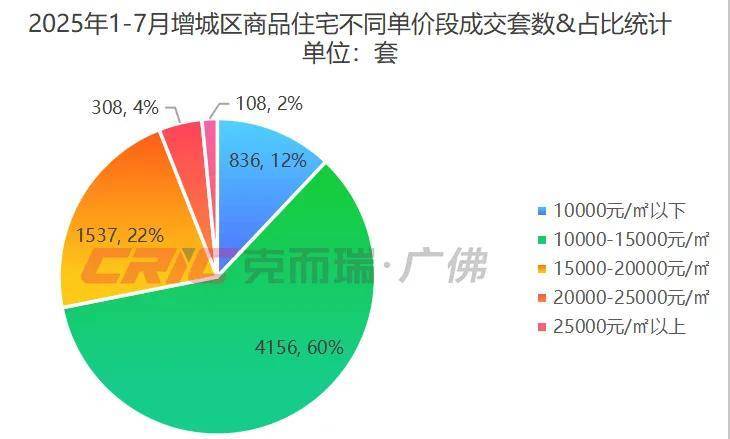 在商品住宅成交均价上,克而瑞数据监测显示,2025年1-7月增城区商品住宅成交均价14459元/㎡,低于南沙、花都两区,略高于从化区。