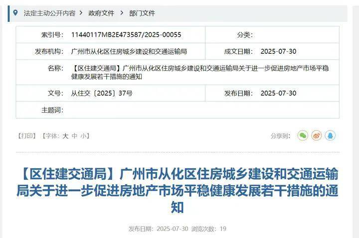 7月末,从化区住建交通局发布《关于进一步促进房地产市场平稳健康发展若干措施的通知。》