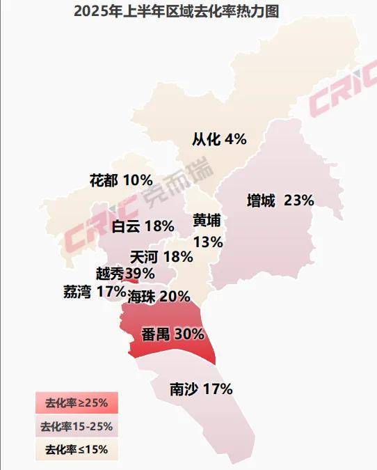 例如在上半年的各区的开盘去化上,克而瑞数据监测显示,增城区开盘去化率为23%,远高于另外三区。