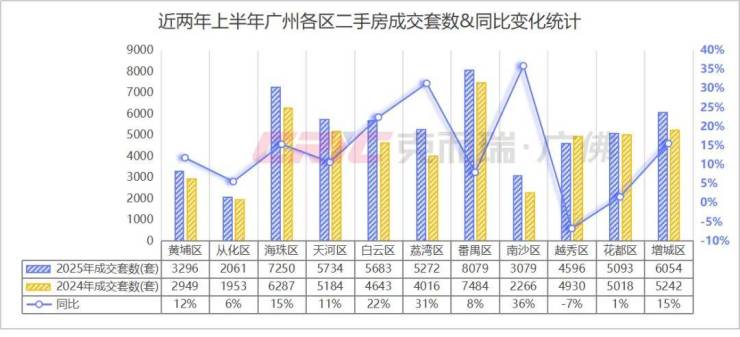二手房方面,克而瑞数据监测显示,今年上半年增城区成交规模四区最高,但南沙区的的同比增幅为四区最高,达到了36%。