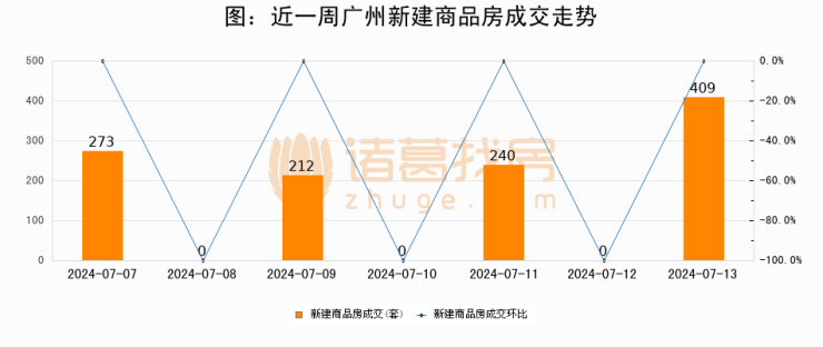 【广州成交日报】07月13日新房成交409套;涨价房源122套