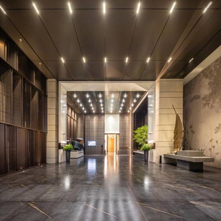 从交标细节来看,则体现了对品质与人性化细节的考量。首层双入户大堂,约10米挑高设计,选取同源六星级瑰丽酒店的用材,极具调性。同源世界地标甲级写字楼的高速电梯,让优雅与效率兼具。