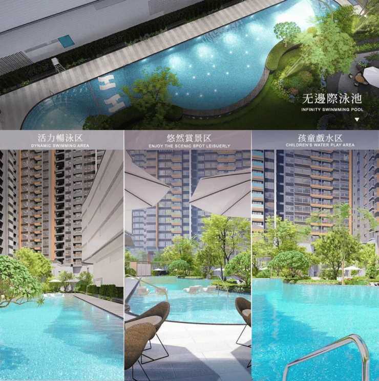 项目的园林打造出八大主题园林、四大泛会所空间,把风景植入到不同年龄业主的日常场景之中。更令人惊喜的是,这里还有与五星级酒店同款的无边界泳池,营造城市微度假生活舒适感。