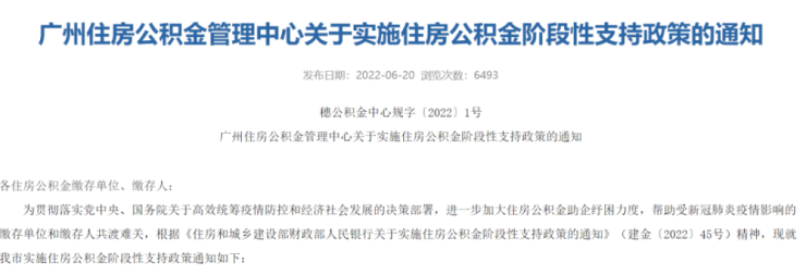 此外,早在今年6月,广州住房公积金管理中心曾发布《关于实施住房公积金阶段性支持政策的通知》。