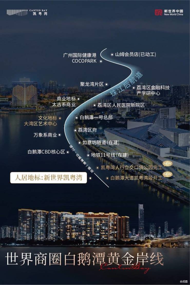 随着文化与商业领域的地标聚首身旁,人居地标新世界凯粤湾联通商业地标万象城、文化地标白鹅潭大湾区艺术中心,领衔白鹅潭第一圈层地标圈的资源红利,集聚世界倾羡的目光。