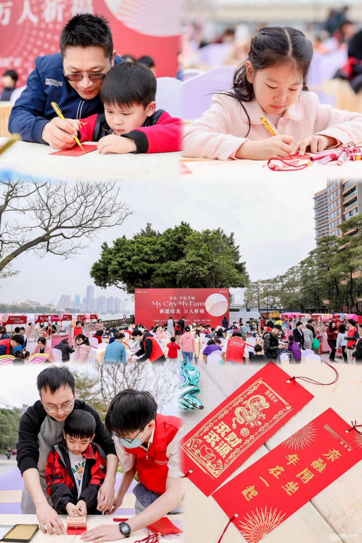 这一场别开生面的活动,汇聚众多热爱生活、热爱年节仪式的广粤“亲友团”,同场感受美善活动的喧嚣与热情,与亲友近邻们,共同见证身边的美好:漫步市集之中,逛赏一个个年味十足的档口,现场体验非遗拓印文化,收获将新愿成功拓印在宣纸上的喜悦;除了领取极具质感的“龙年利是封”,还能通过丰富的图案和样式组合,定制独属自己的满袋福气。
