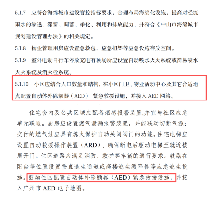 此外,中山与广州还提出鼓励住宅区配置 AED(自动体外除颤器)急救设施。