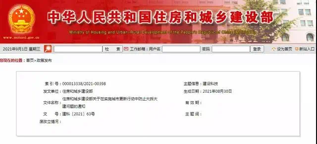 8月30日,住建部正式发布《关于在实施城市更新行动中防止大拆大建问题的通知》(建科〔2021〕63号),强调反对旧改过度地产化,不大规模、短时间拆迁城中村等城市连片旧区,导致住房租赁市场供需失衡,从而推高房租、房价。
