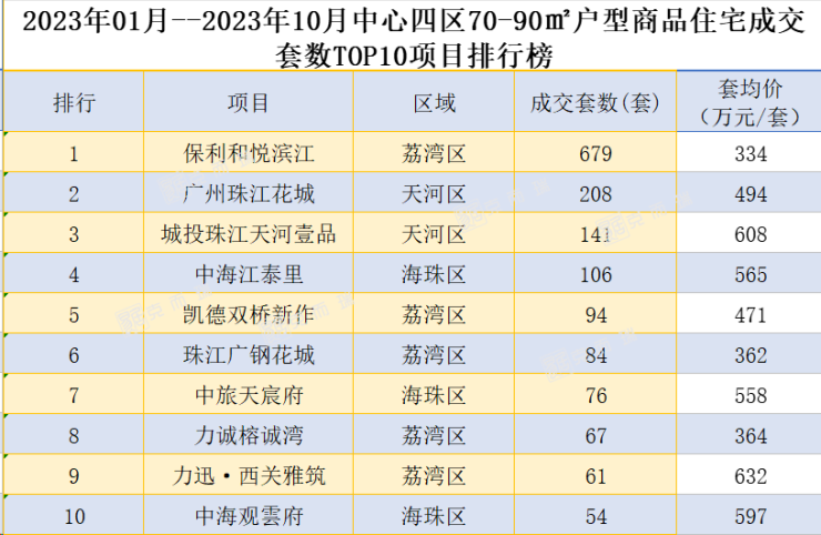最后我们再来看看中心四区今年1-10月70-90㎡户型哪个项目卖的最好。