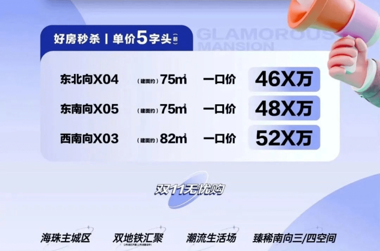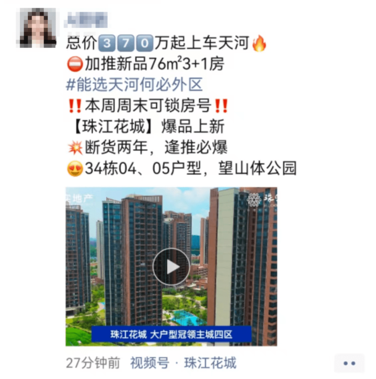 目前天河润府已经跃跃欲试,珠江花城也不甘示弱,在新房市场上做出动作,抢先拿区位+朝向没那么好的小户型,提前抢客。