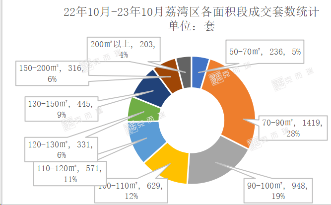 克而瑞数据监测显示,近一年荔湾成交6014套商品住宅,其中成交主力户型为70-90㎡,成交1802套,占比为28%,