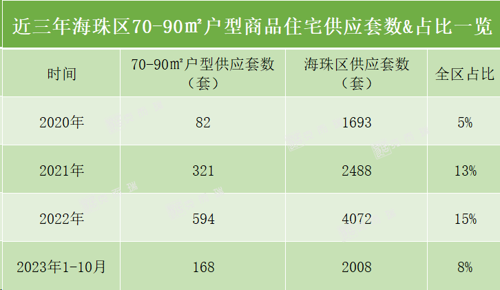 但与天河不同的是,放眼整个海珠,近几年来海珠区70-90㎡户型供应套数已经越来越少,“且买且珍惜”。