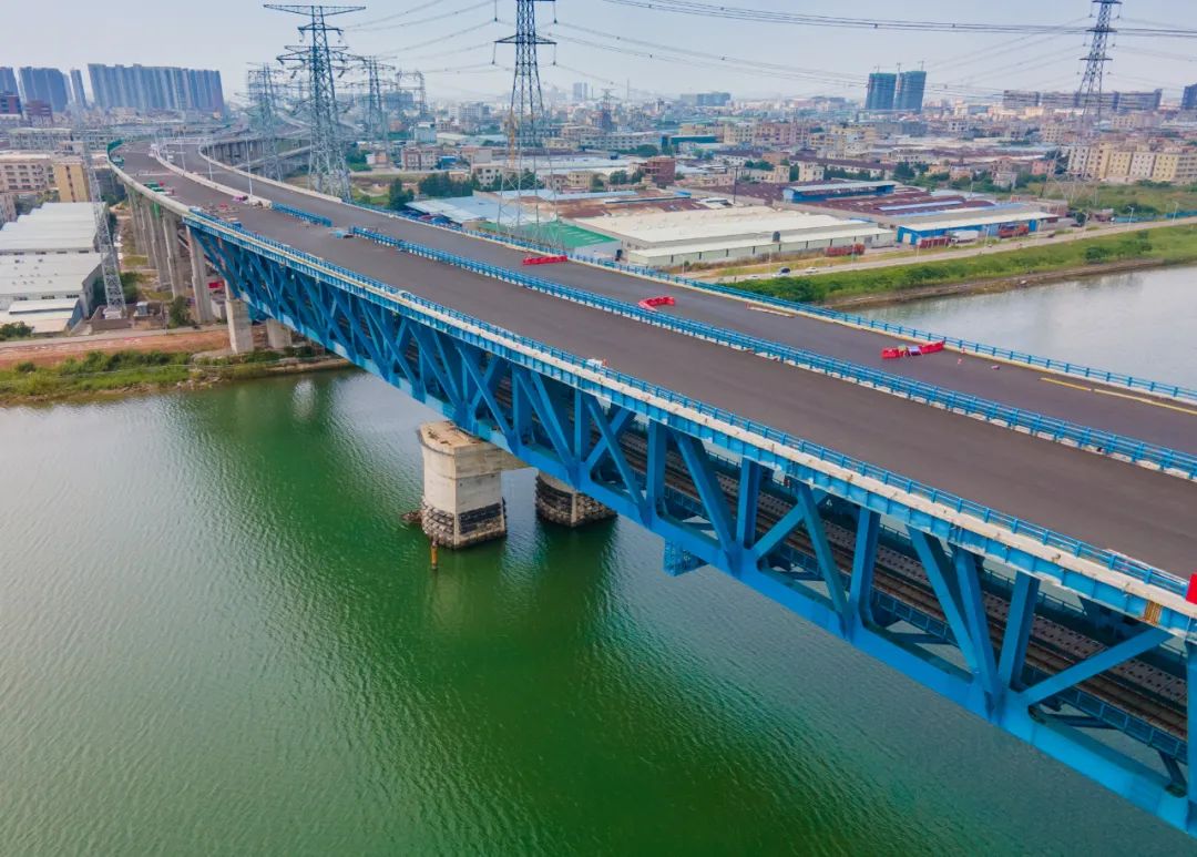 其中,西江特大桥等部分路段为与南沙港铁路共线的公铁合建两用桥,上层为高速公路,下层为客货双线铁路。
