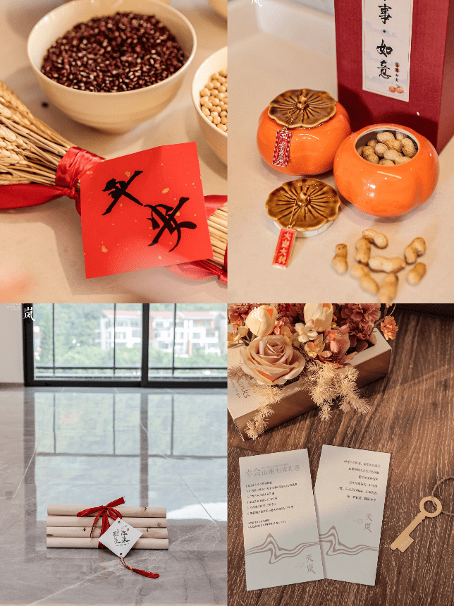 客厅里的“开⻔⻅财”“事业蒸蒸⽇上”,厨房里的“五⾕丰登“、”⻛声⽔起”、 “平安顺遂”、“事事如意”“好事发⽣”等一系列对天岚业主美好祝愿,将收楼仪式感拉满。