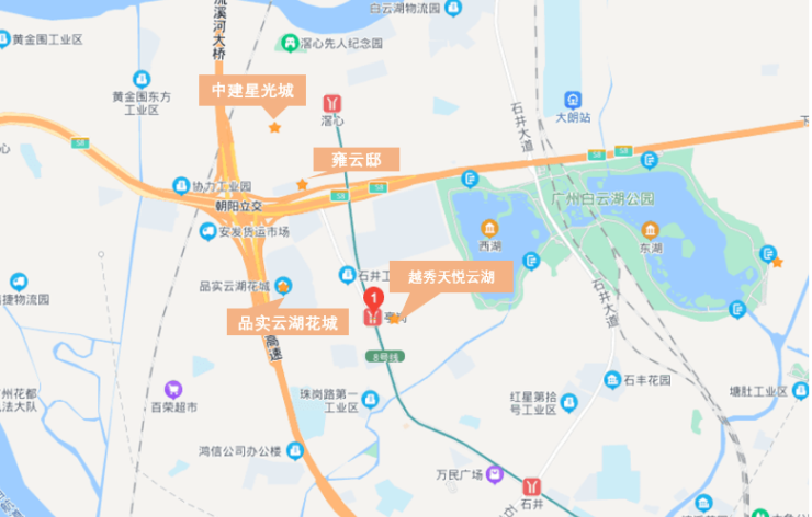 其中8号线的始发站滘心站附近有招商弘裕雍云邸和中建星光城,亭岗站附近有越秀天悦云湖和品实云湖花城。