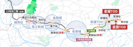 此外,越秀新塘二子越秀星耀TOD和越秀TOD·星图均为13号线地铁盘。