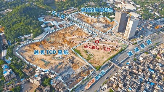 “双雄”越秀滨江星航TOD、先进招商臻珑府均为 5号线东延线庙头路站地铁盘,区别在于星航为地铁上盖项目,臻珑府距离地铁站需过一条马路。