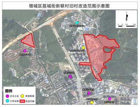 新联村公开选择合作意向企业公告截图涉及1868人,691户 根据公告,新联村旧改项目涉及面积共36.34hm ,全村户籍人口共1868人,户口共691户。项目改造范围主要包括两大块,一是旧村场范围,就是荔城大道以北、荔星大道以东的半圆形区域。二是邻近百水林水库区域,下图左上角的三角形区域,有300米退缩的生态要求,旁边就是雅居乐三千院。