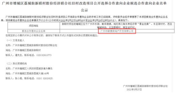 据广州公共资源交易中心公告显示,新联村顺利定下敏捷为候选合作意向企业!新联村旧改终于迈出实质性的一步!