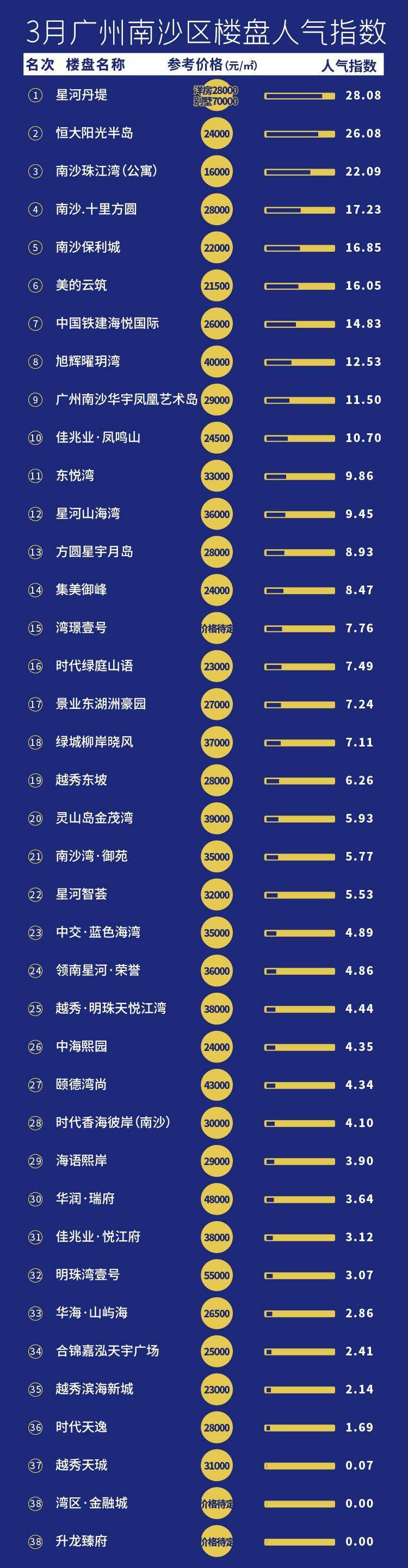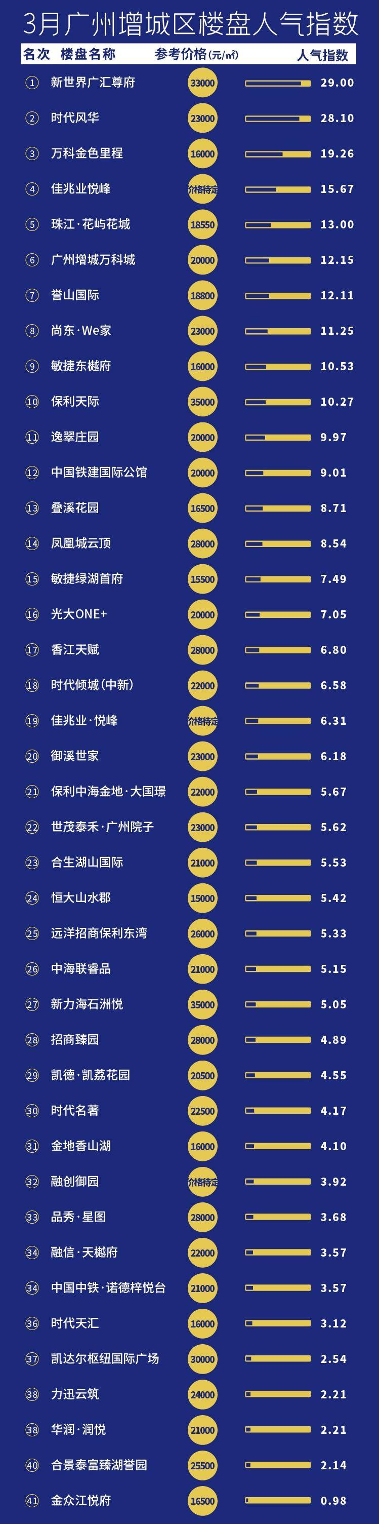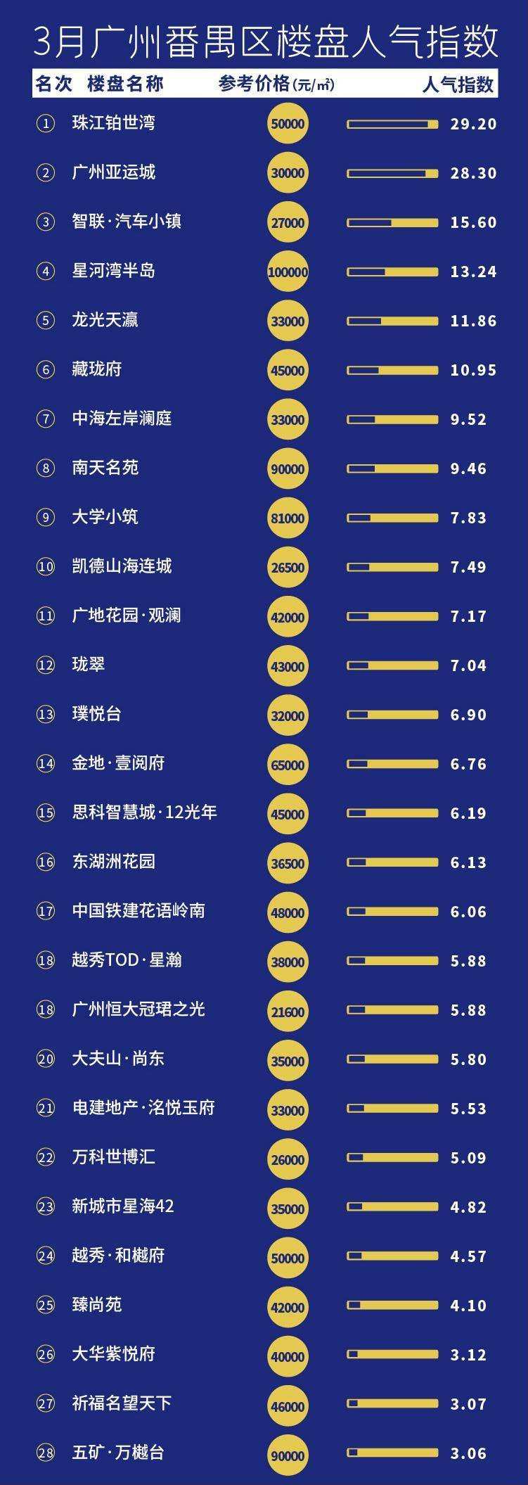 较新广州楼盘人气指数:严查贷款,热度真降了