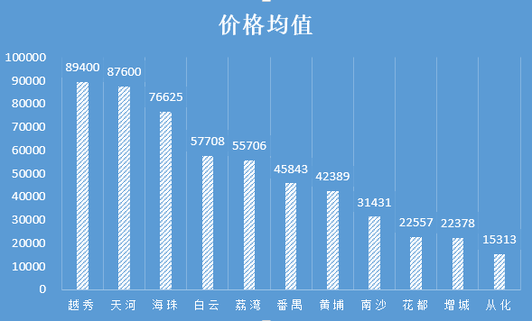 天河区关注度较高,黄埔区均价环比涨幅明显回落