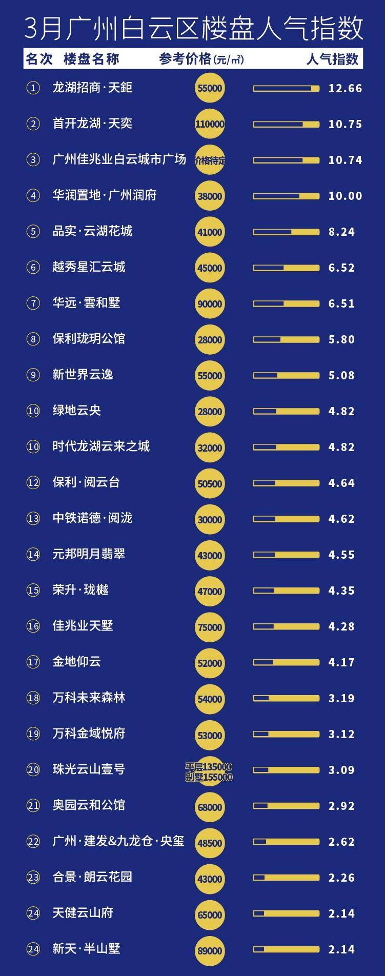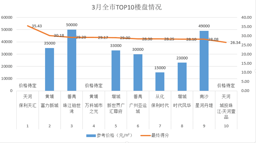 在TOP10榜单中,保利天汇挤掉上月冠军珠江花城,排在了首位。这是该楼盘继1月份后,再一次登顶榜首。由此,今年以来的每月人气较高楼盘皆来自天河区。