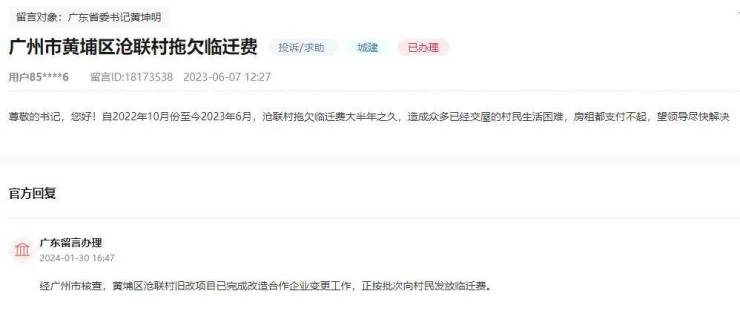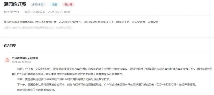 令人想不到的是,自2023年3月起,不少村民便反应其临迁费已拖欠数月,希望相关部门予以协助解决。