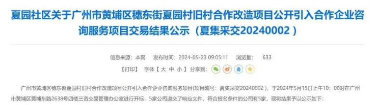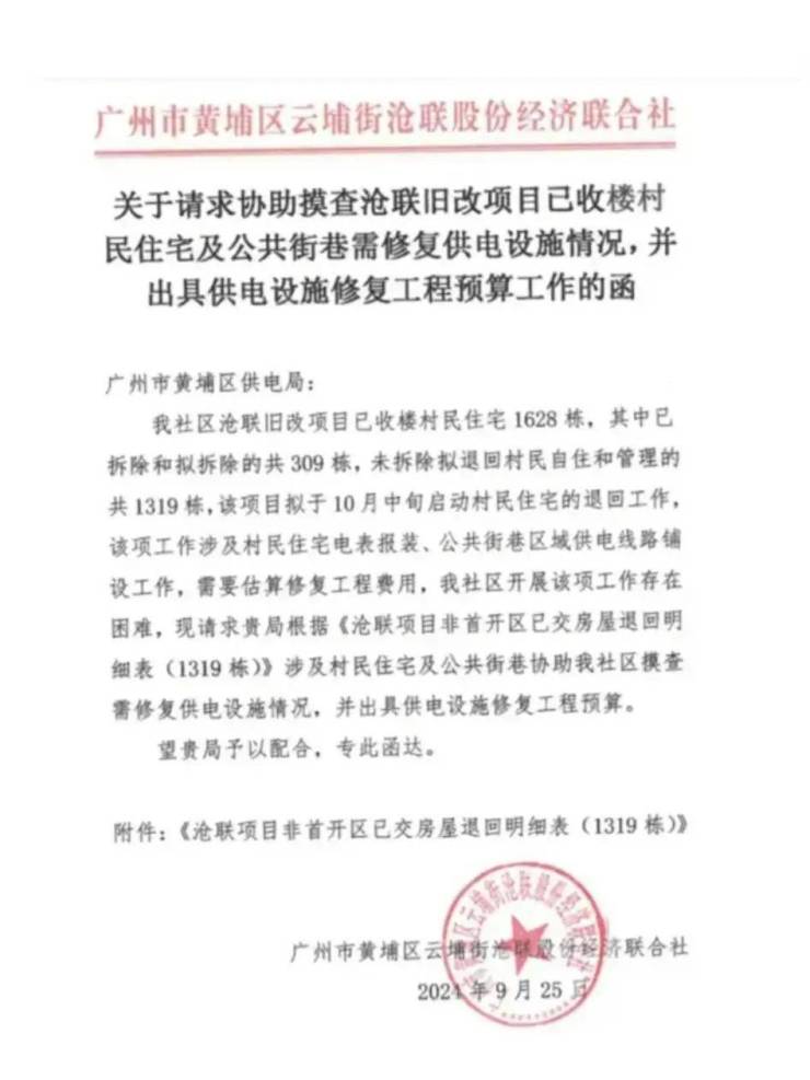 目前,沧联社区旧村改造项目实施方案(片区策划)已于2024年8月24日完成公示。但沧联社区暂未提交引入旧村改造项目合作企业的招商文件申请。