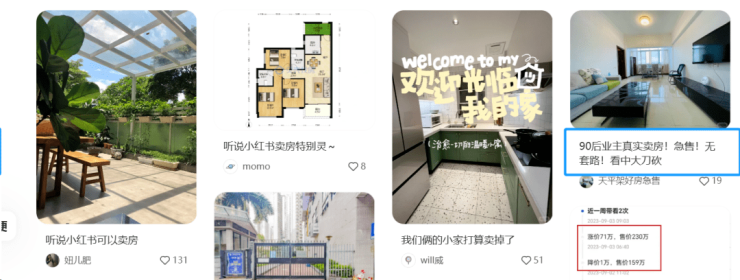 例如小红书现也成为了一种卖房的途径,有的业主直接明确,看中可以大刀。