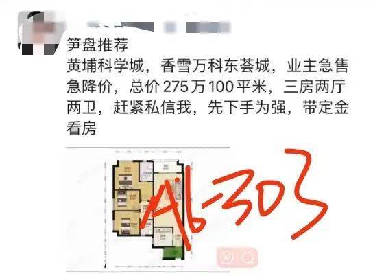 以科学城网红盘万科东荟城为例,两个星期前挂出现了一套北向100㎡三房两厅两卫户型,贝壳挂牌300万,底价275万,折合单价2.75万元/㎡,最终成交价为277万,震惊了圈内。