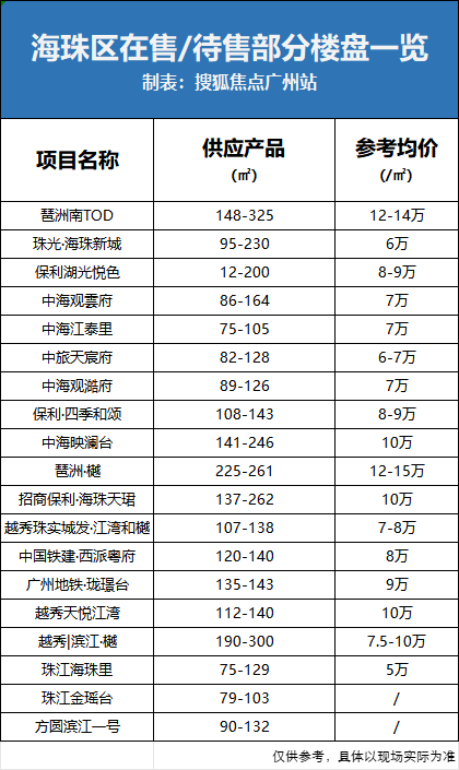 最后,也给大家奉上海珠目前在售的项目信息。既有总价过千万的大户产品,也有低价楼盘给刚需客户留下的机会,希望大家都能买到满意房。