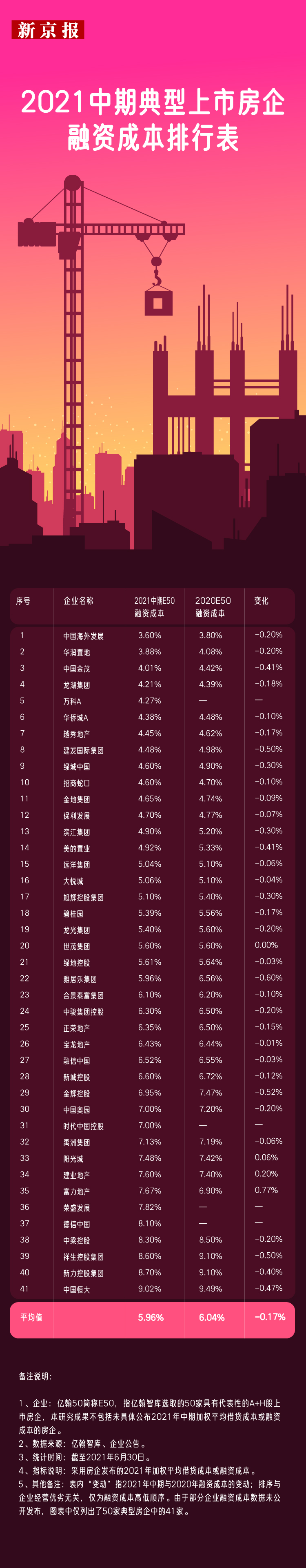 中报盘点|房企融资成本排行榜:调控之下,谁借的钱更便宜?