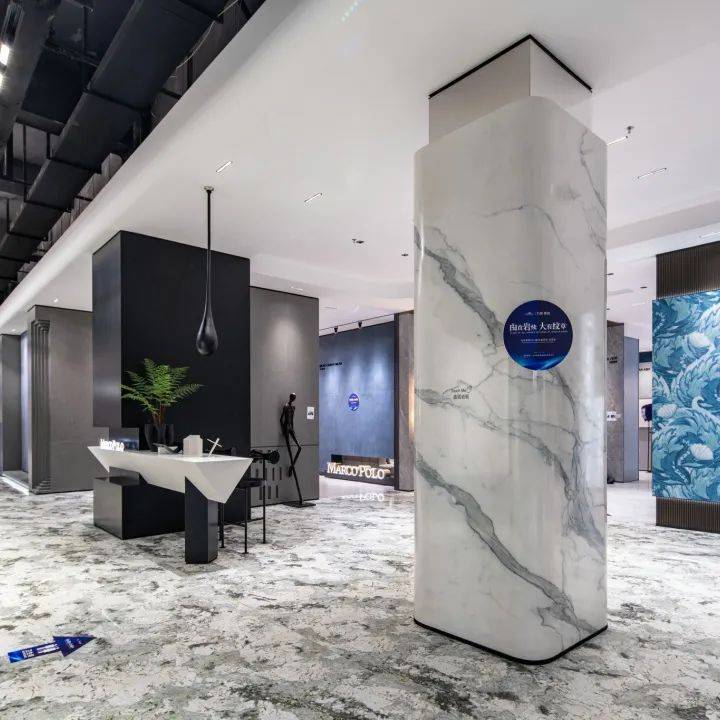 与马岩松在云洞中的曲线设计不谋而合,2021年马可波罗创新研发曲面岩板,突破平面设计局限,为空间设计提供更优质的设计材料。