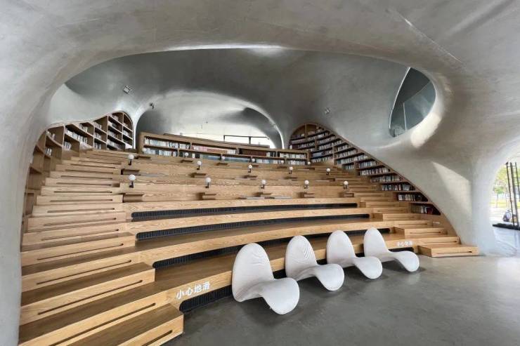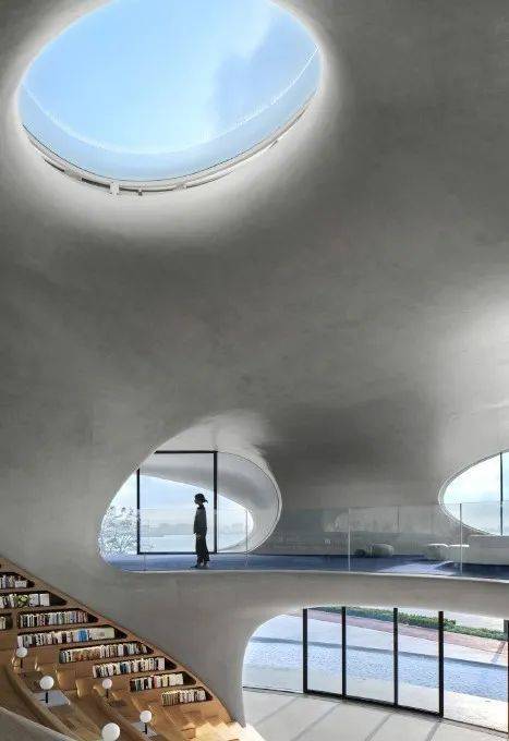 云洞图书馆的建筑设计出自国际著名建筑设计师马岩松及其所带领的MAD事务所之手,“无尽的洞,每个小洞都是宇宙,也是一个个耳朵,让人倾听大海的精神世界。”这座位于海口湾、面朝大海的图书馆,像是多维的时空隧道,连接了城市与海岸、现实与想象。