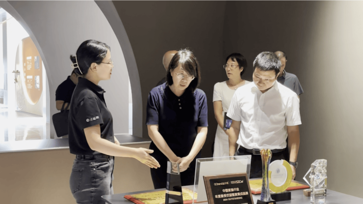 在展厅内,法迪奥负责人介绍了企业发展历程、新总部建设进展及未来战略布局。