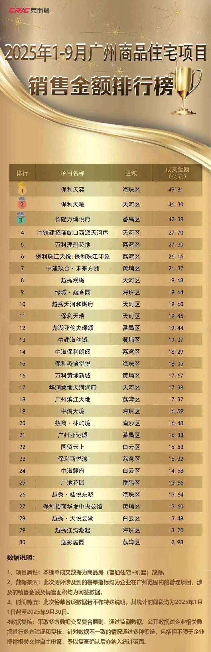 TOP30超10亿!TOP10超500套!2025年1-9月广州楼盘榜发布
