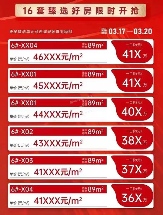 随后,去年首开4.6-4.8万/平的先进招商臻珑府也推出一批特价单位,89平户型,低至4.1万/平起,且支持首付分期;