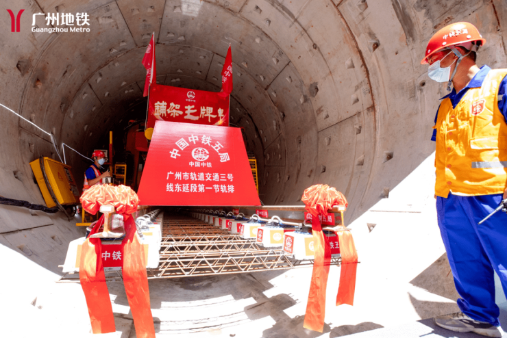 三号线东延段全长9.55公里,西起番禺广场站,沿亚运大道向东延伸至海傍站与地铁四号线换乘。为确保铺轨工作顺利进行,施工单位中铁五局的地铁建设者们不断调整场地功能布局、完善铺轨基地建设方案,坚持疫情防控、施工生产“两手抓”,稳步推进施工。