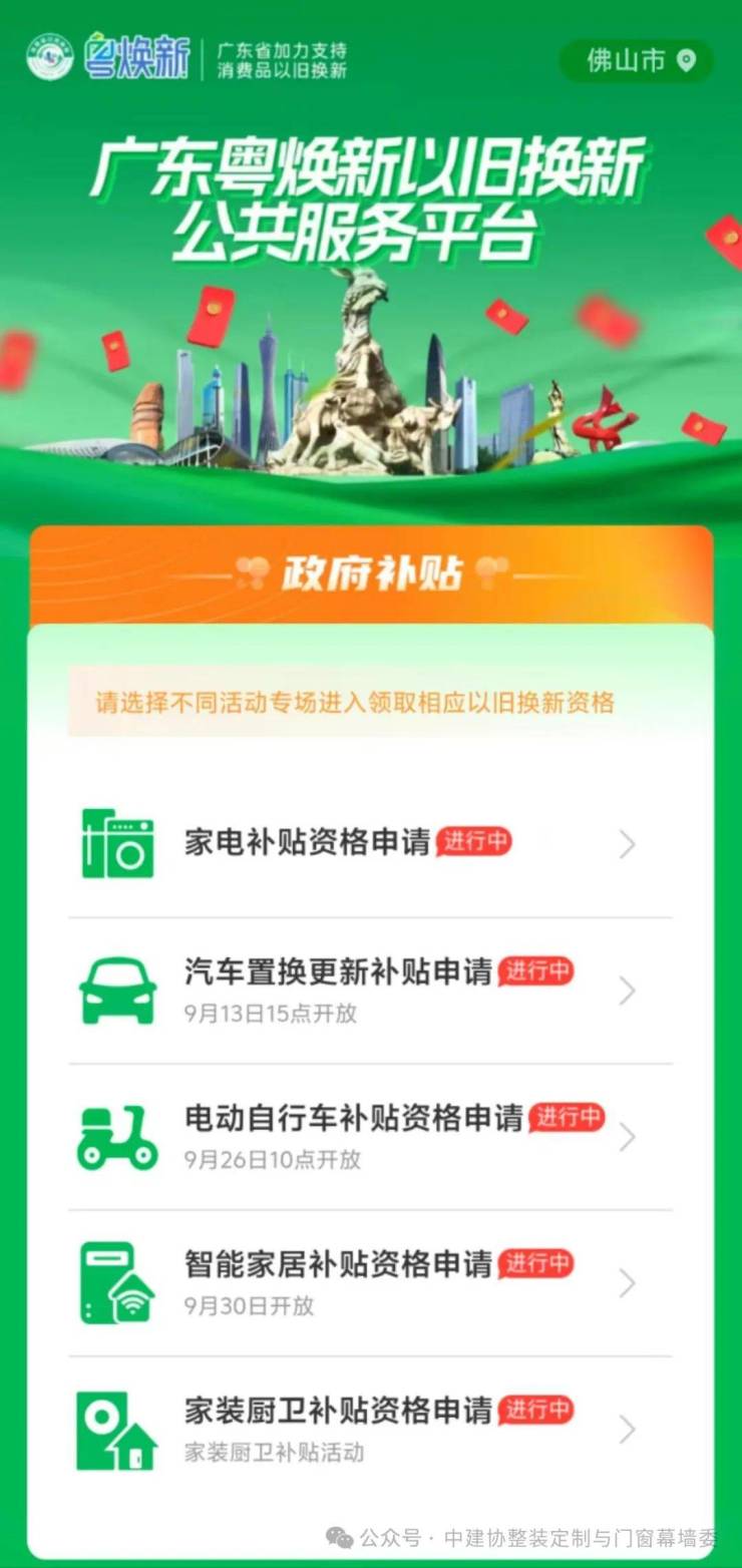 申领平台:云闪付、微信搜索“粤焕新”