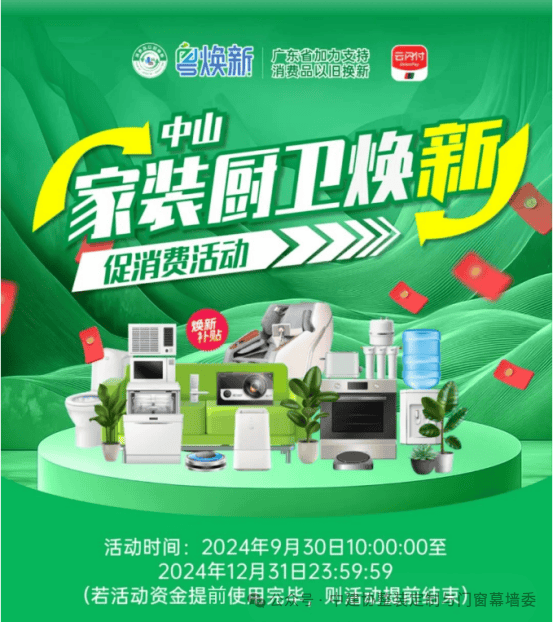 中山市“粤焕新”再放大招!购买家装厨卫也可以补贴。
