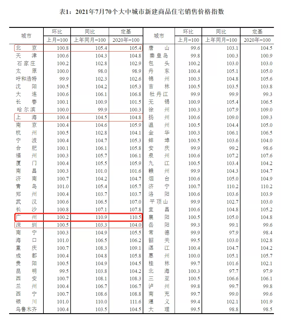 国家统计局再次更新70个大中城市商品住宅销售价格;据测算,7月份,一线城市新建商品住宅销售价格环比上涨0.4%,涨幅比上月回落0.3个百分点。