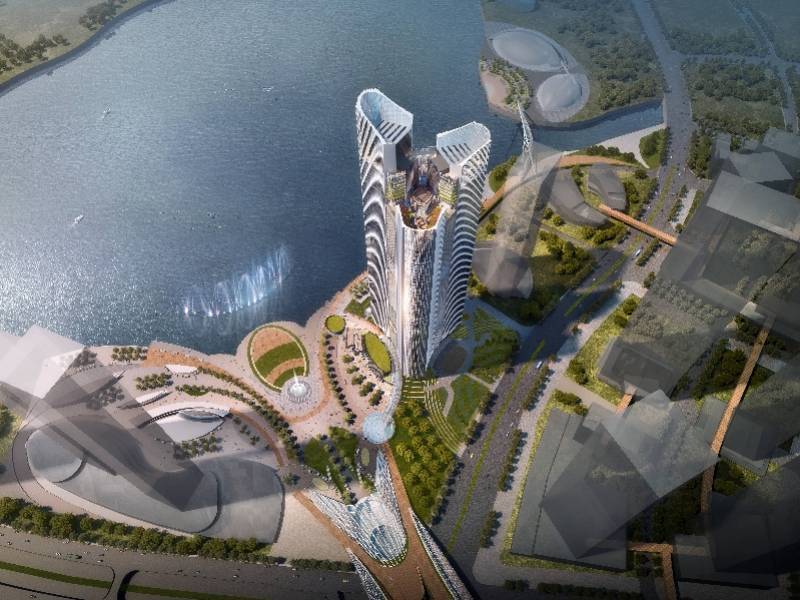 据悉,知识塔项目是与黄埔区政府、知识城集团深化合作的又一重要载体。项目位于知识城九龙湖北岸中央,广州地铁14号线知识城支线连接该工程地下室。作为中新两国合作的标杆项目、知识城地标建筑,广州中新知识塔自建筑规划公布以来,便享有“知识城在建排名前列高”的美誉。项目总建筑面积约39.9万m²,地上53层,地下5层,建筑高度330米,预计在2023年10月实现主体结构全面封顶。